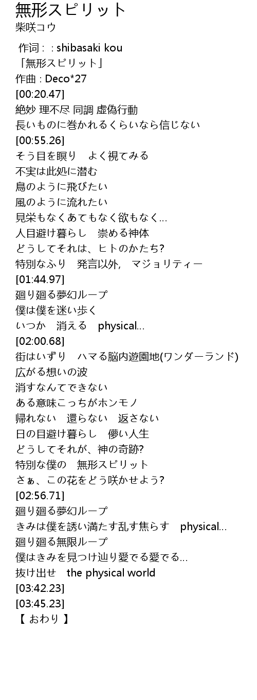 | [00:01.47] | 「無形スピリット」 |