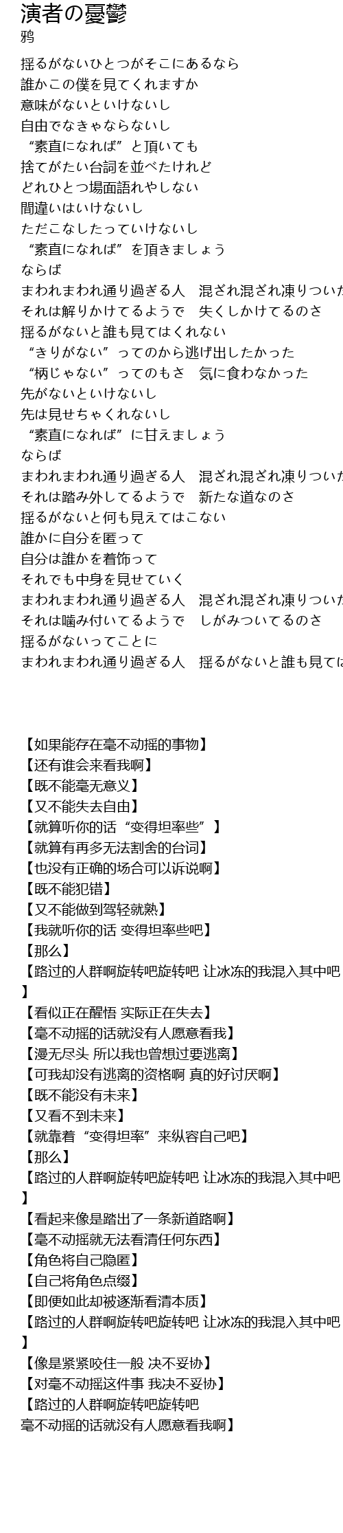 | [01:53.23] | まわれまわれ通り過ぎる人 混ざれ混ざれ凍りついた僕と |