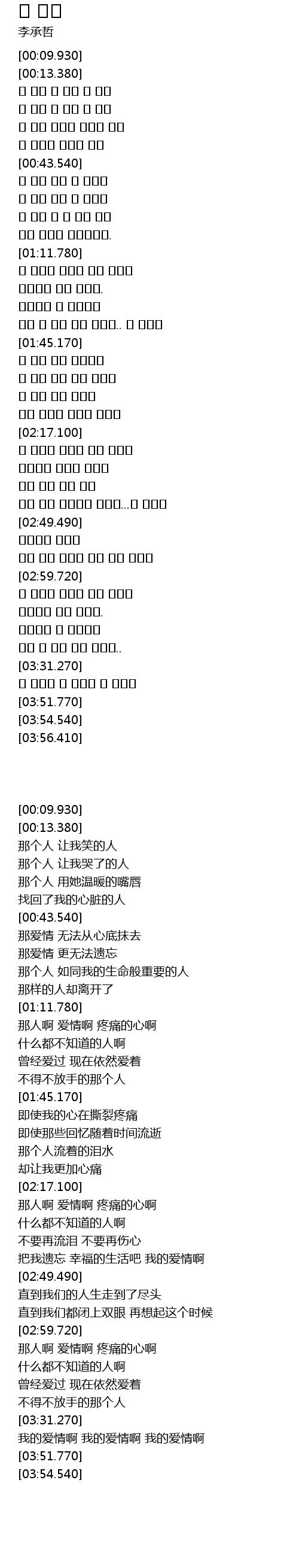 | [03:00.160] | 그 사람아 사랑아 아픈 가슴아 |