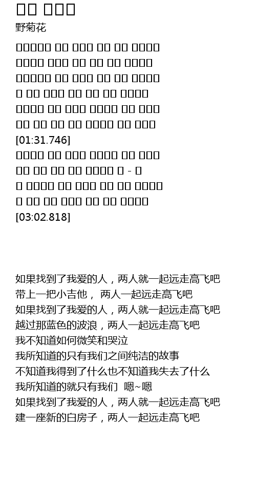 내사랑하는 님을 찾으면 둘이 멀리 떠나가지 |