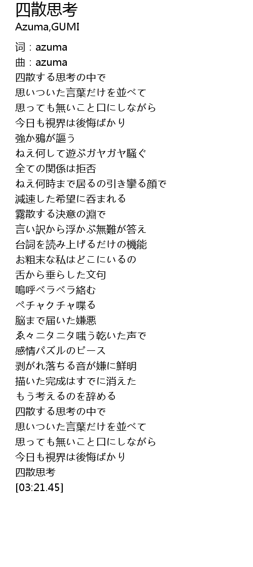 | [02:46.72] | sì sàn sī kǎo zhōng |