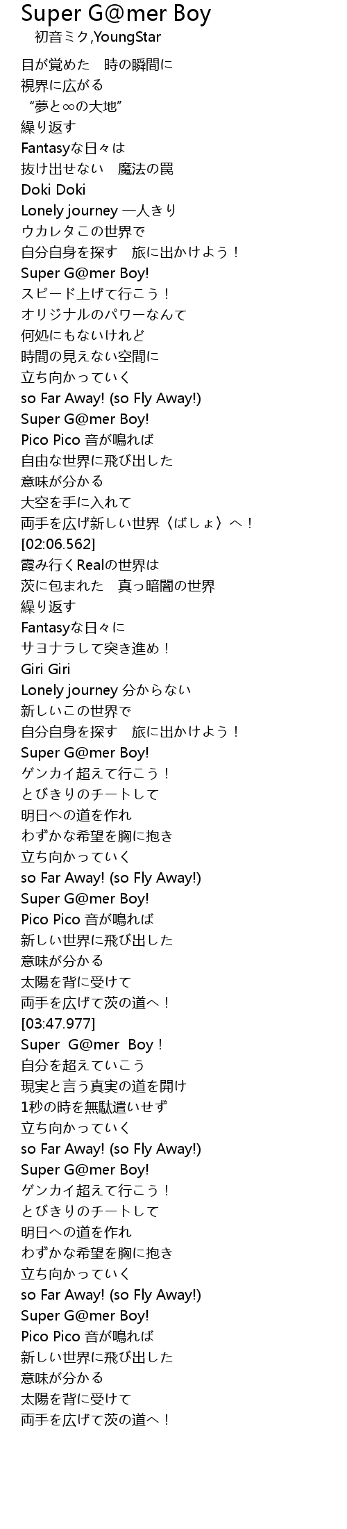 | [03:20.065] | so Far Away! (so Fly Away!) |