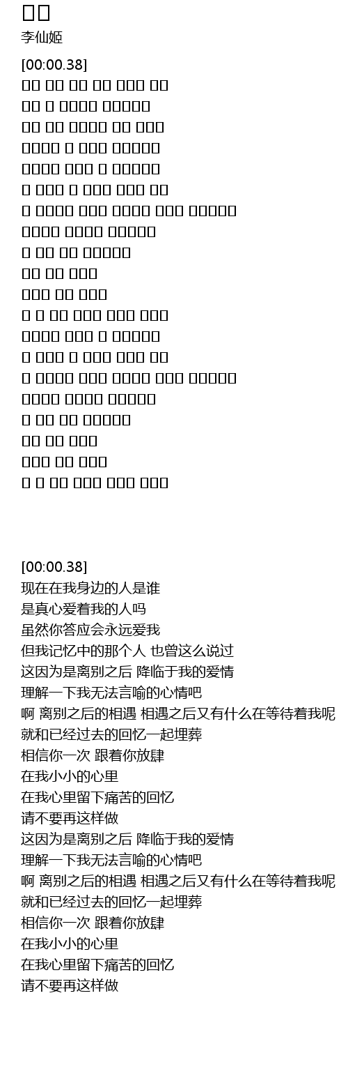 | [00:42.54] | 이별뒤에 나에게 온 사랑이기에 |