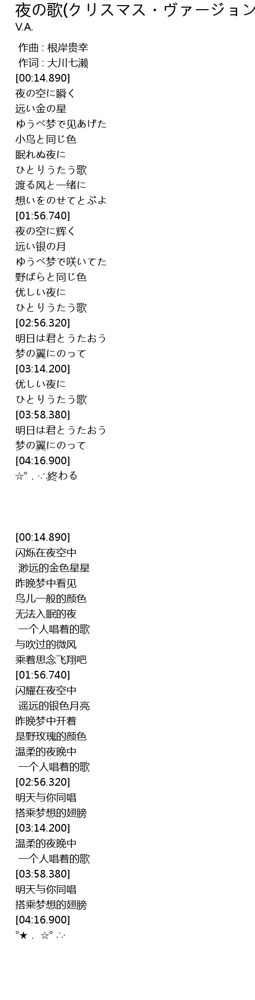 | [02:12.190] | 夜の空に辉く |