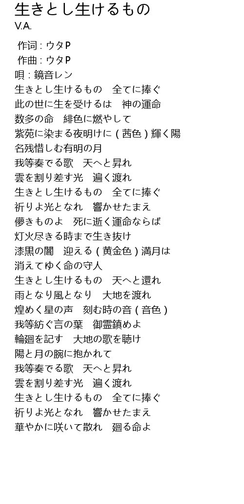 | [00:02.57] | 生きとし生けるもの 全てに捧ぐ |