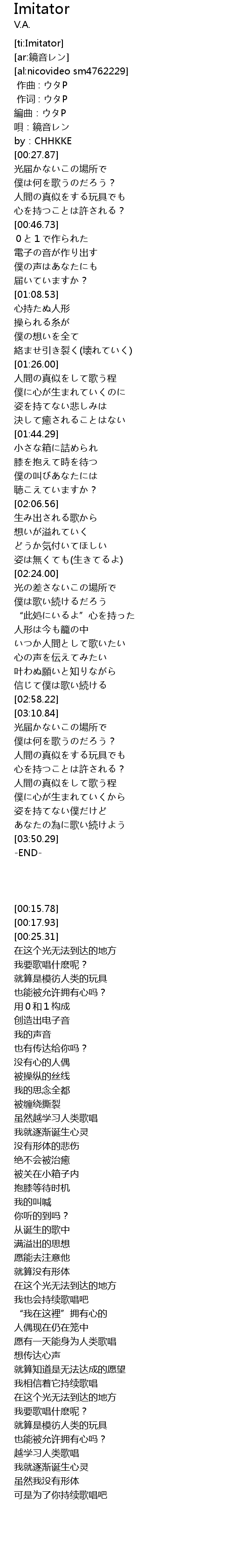 | [02:19.46] | 姿は無くても(生きてるよ) |