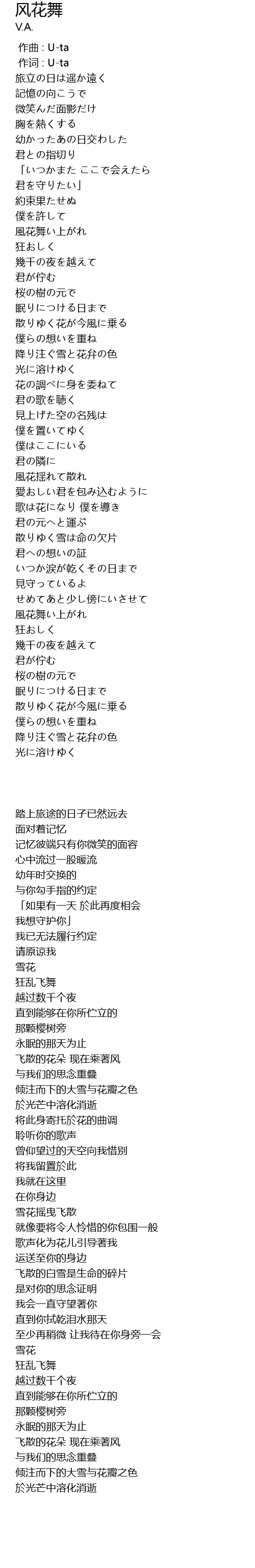 | [04:42.17] | 降り注ぐ雪と花弁の色 |