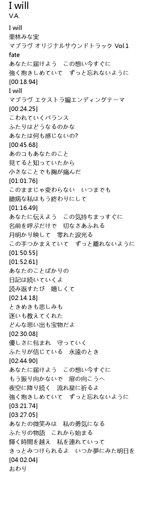 | [02:37.63] | ふたりが信じている 永遠のとき |