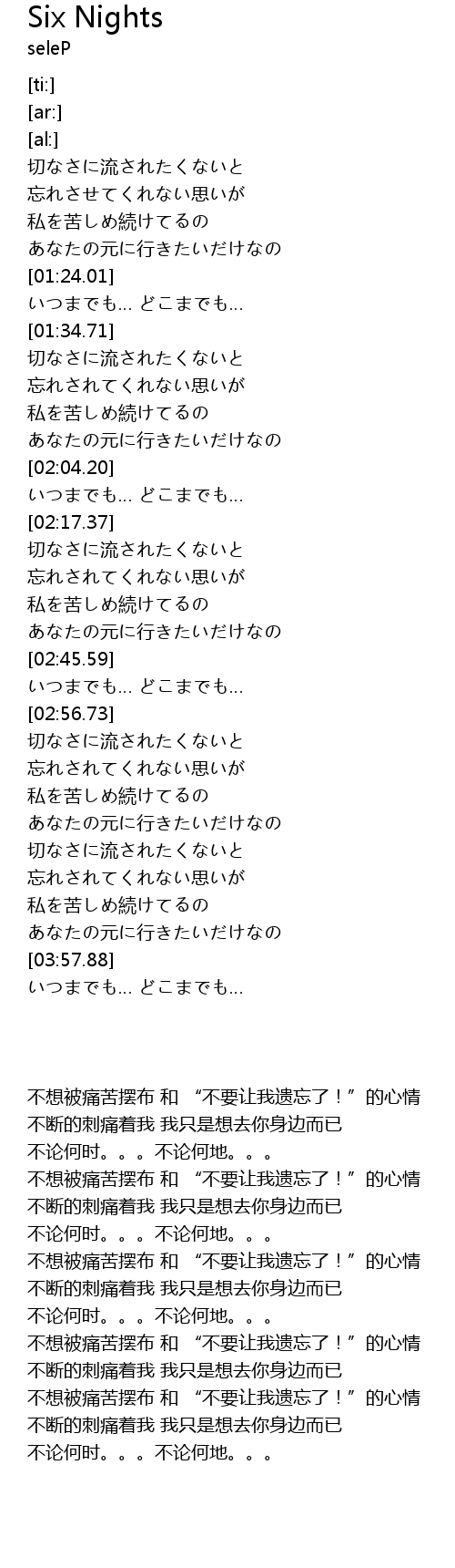| [03:47.67] | 私を苦しめ続けてるの あなたの元に行きたいだけなの |