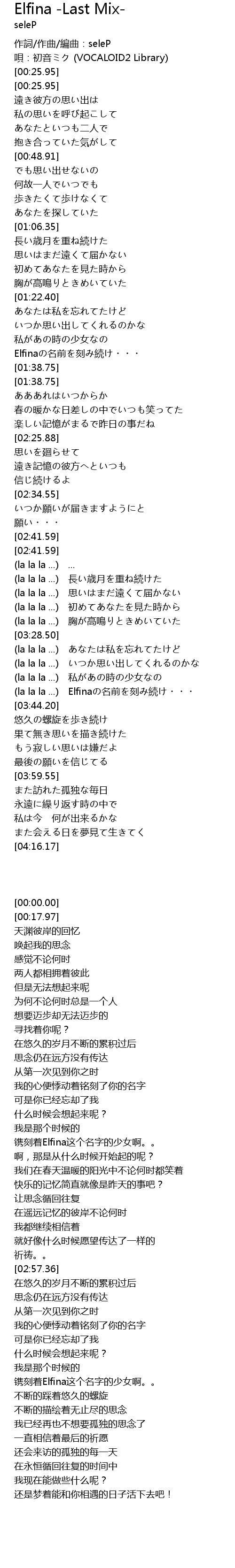 | [03:40.14] | la la la ... Elfina ming qian ke xu |