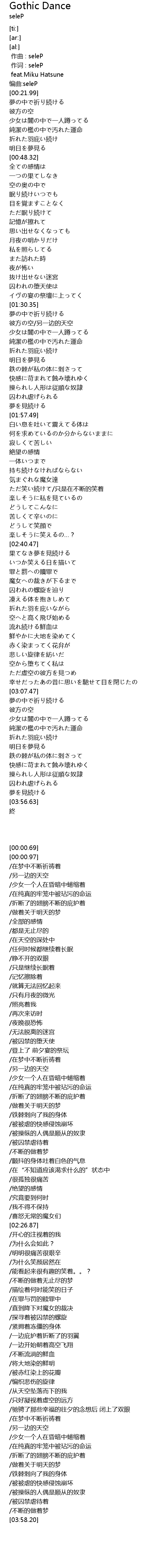 | [00:41.43] | 純潔の檻の中で汚れた運命 |