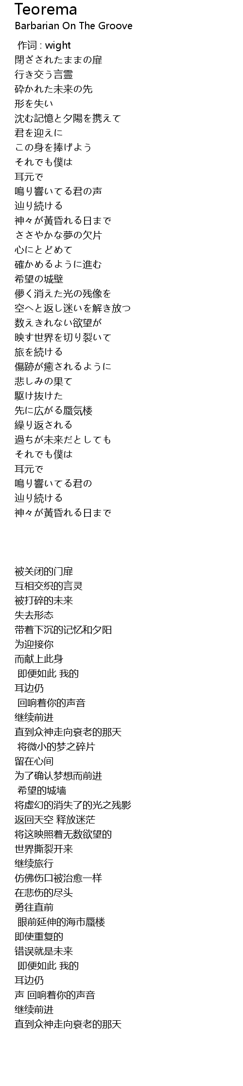| [00:00.000] | 作词 : wight |