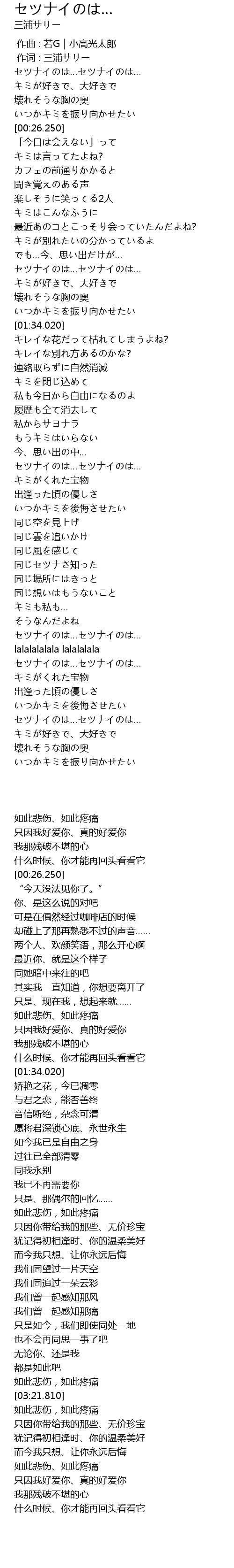 | [00:01.000] | セツナイのは…セツナイのは… |