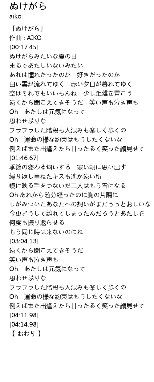 | [00:01.45] | 「ぬけがら」 |