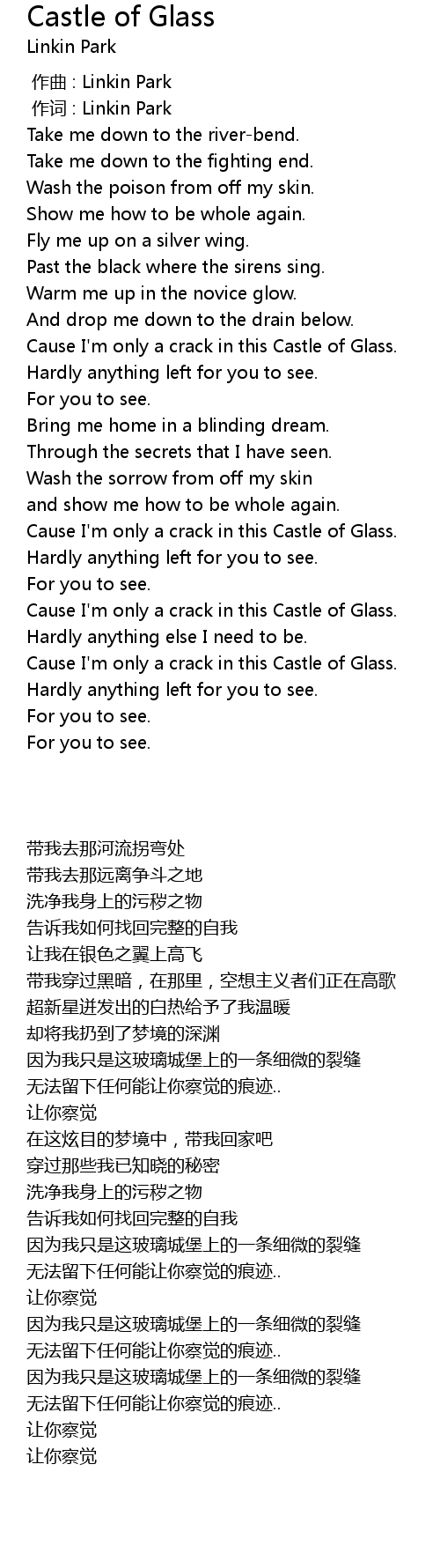 | [02:32.100] | Cause I'm only a crack in this Castle of Glass. |