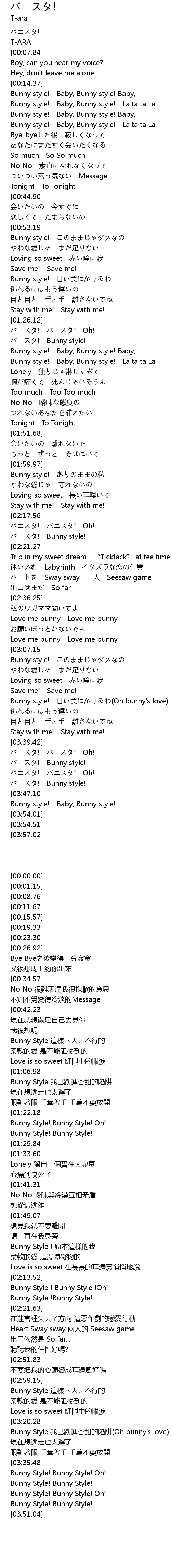 | [03:24.07] | Bunny style! 甘い罠にかけるわ(Oh bunny's love) |