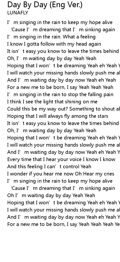 | And I’m waiting day by day now Yeah eh Yeah Yeah | |