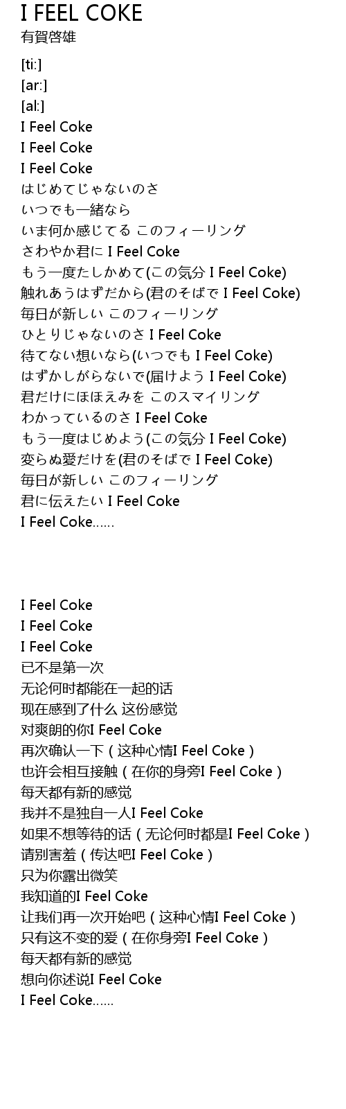 | [02:22.17] | はずかしがらないで(届けよう I Feel Coke) |