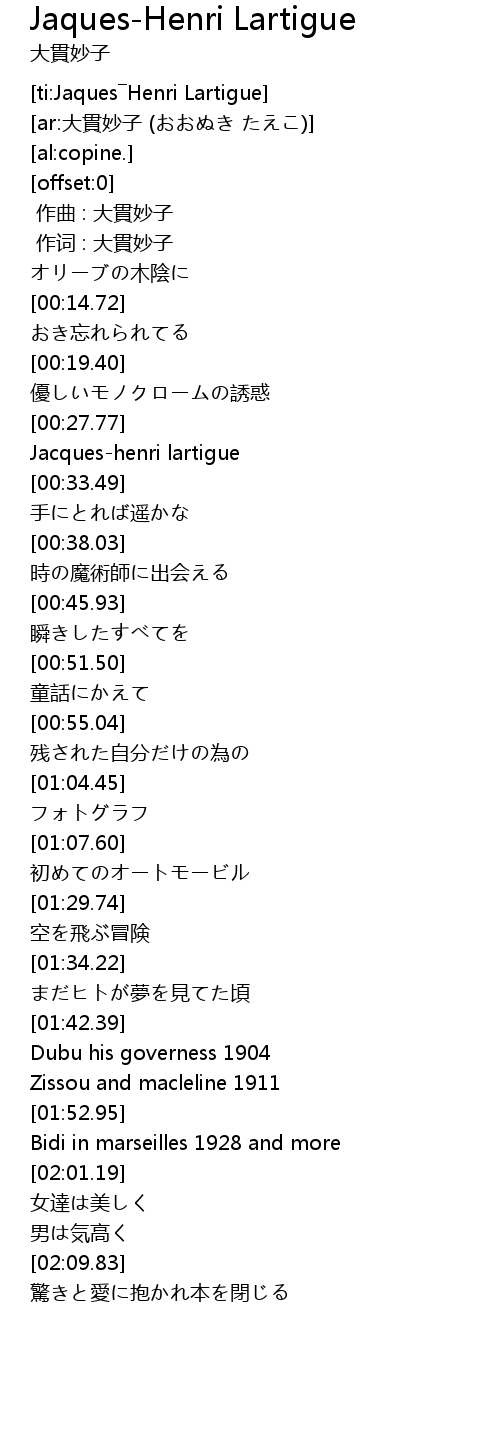 | [00:00.00] | 作曲 : 大貫妙子 |