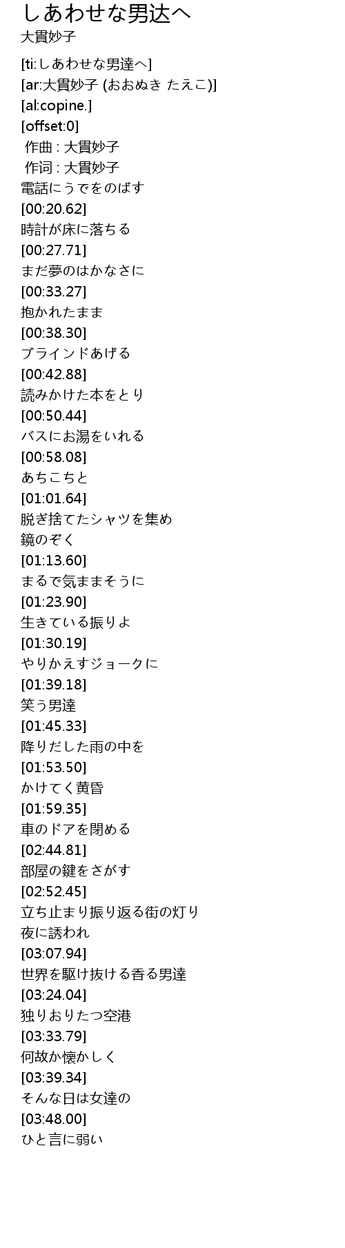 | [00:00.00] | 作曲 : 大貫妙子 |