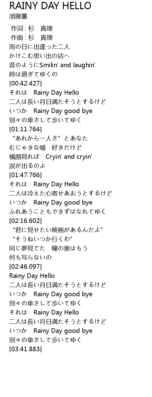 | [00:43.212] | それは Rainy Day Hello |