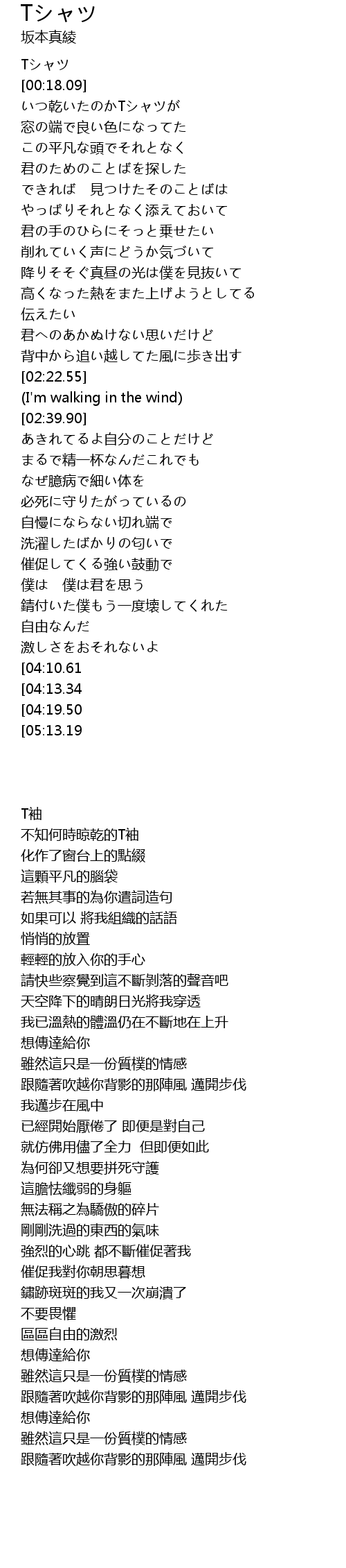 | [00:30.03] | いつ乾いたのかTシャツが |