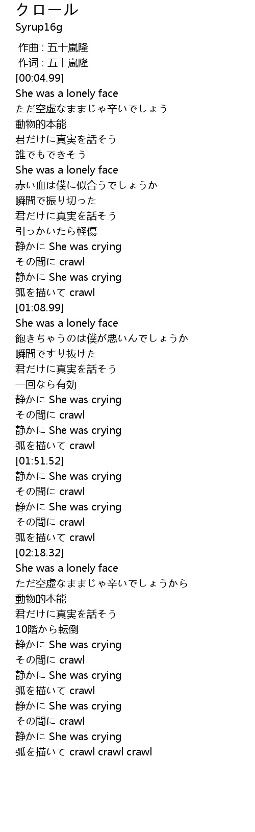 | [03:10.00] | 弧を描いて crawl crawl crawl |