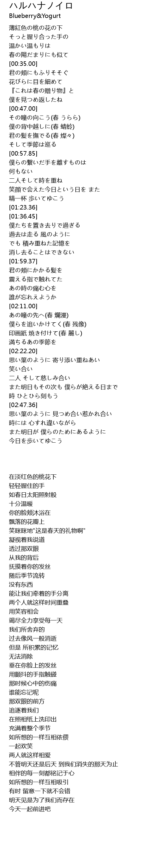 | [00:47.18] | その瞳の向こう(春 うらら) |