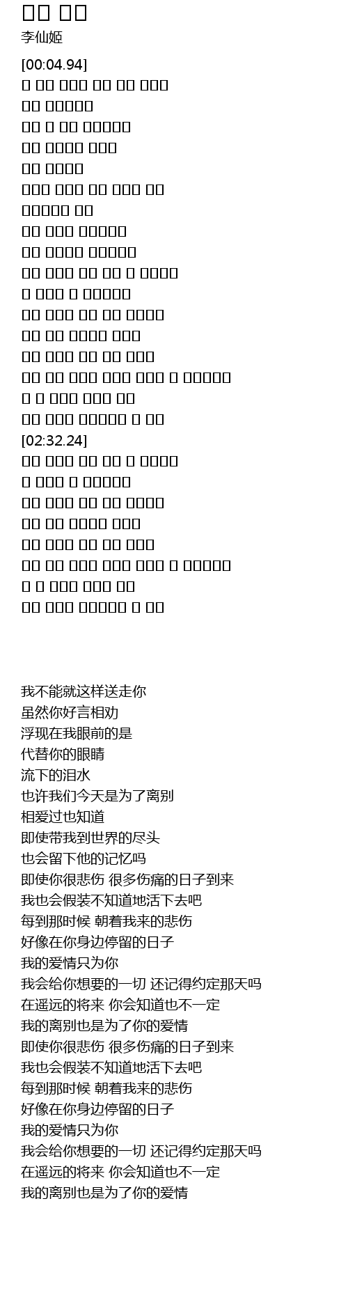 | [02:18.28] | 나의 이별도 사랑이었어 널 위한 |