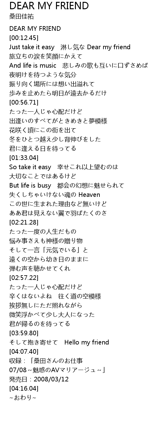 | [00:01.98] | DEAR MY FRIEND |