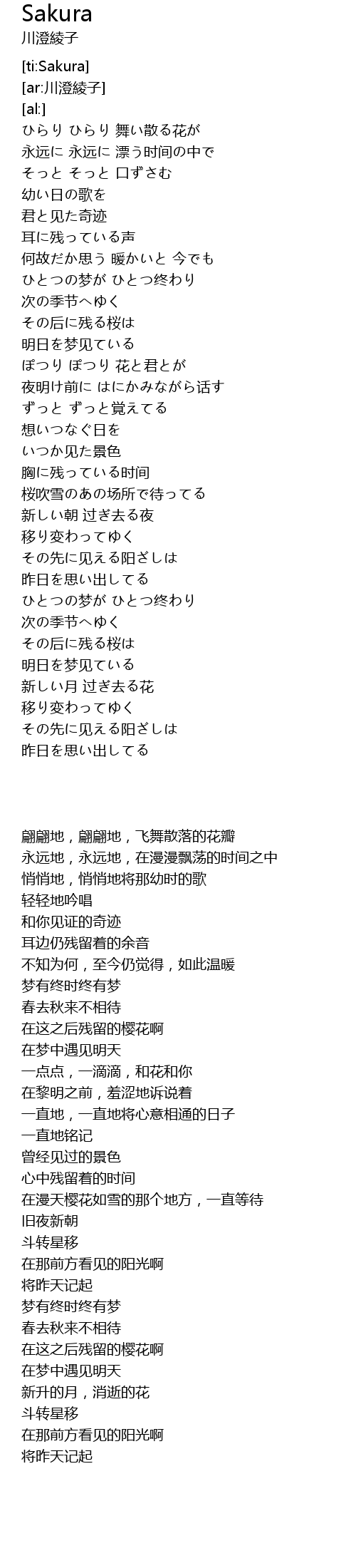 | [02:25.36] | 桜吹雪のあの场所で待ってる |