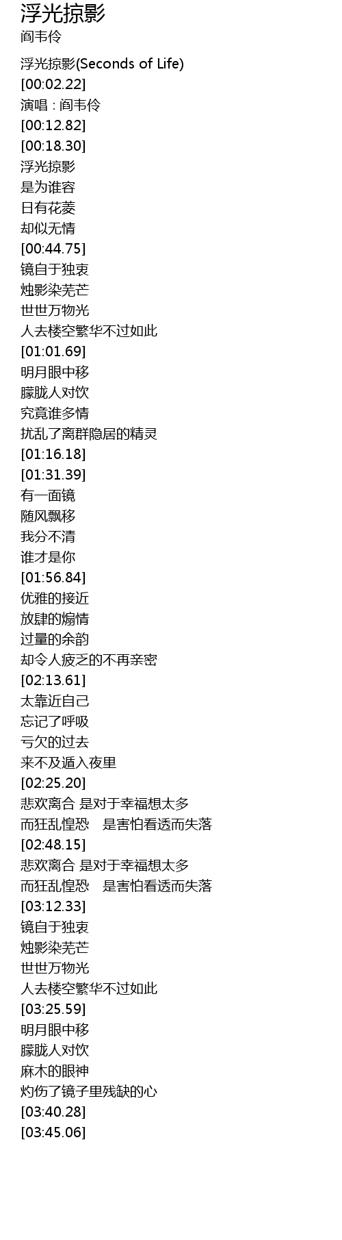 | [00:00.09] | 浮光掠影(Seconds of Life) |