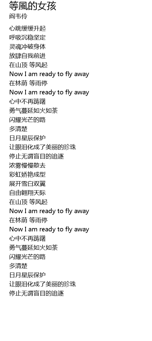 | [01:12.800] | Now I am ready to fly away |