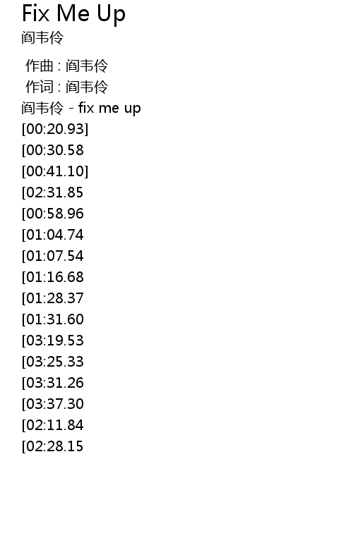 | [04:17.13][02:11.84] | Fix me up Fix me up |