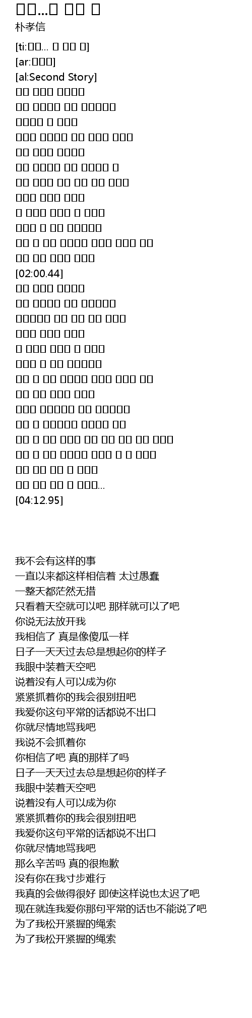 | [04:02.86] | 나를 위해 잡은 끈 놓아요... |