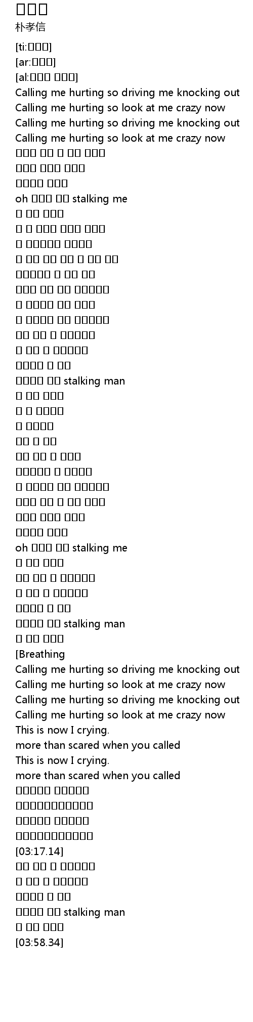 | [02:23.02] | 지켜보고 있나 stalking man |