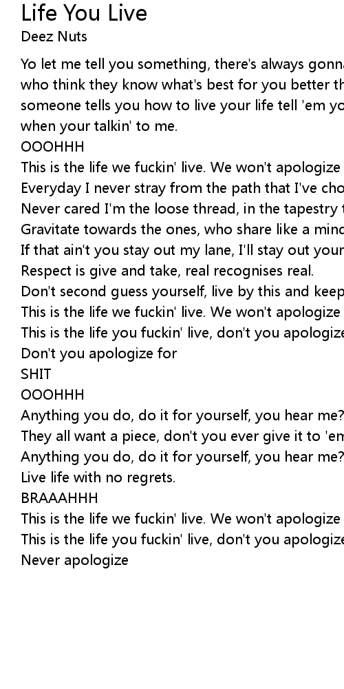 | This is the life you fuckin' live, don't you apologize | |