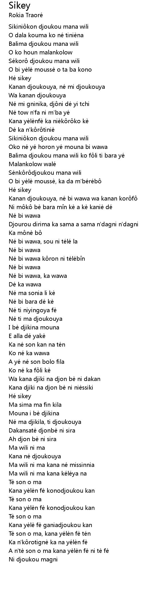 | Ni m k bè bara m n kè a kè kaniè dé | |