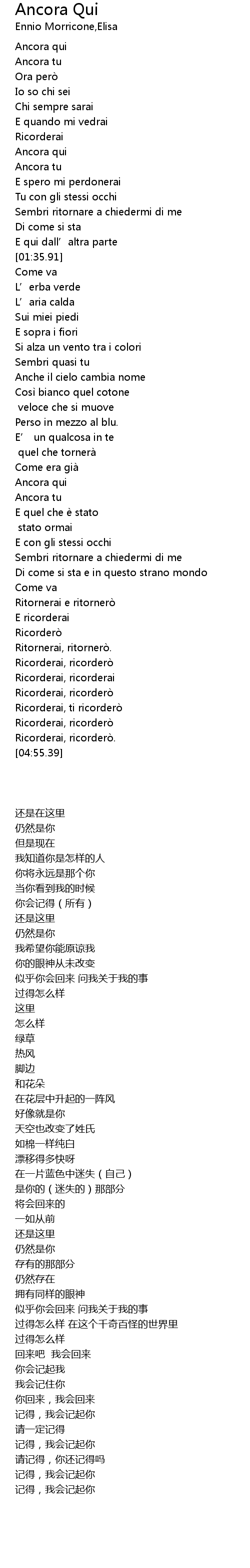 | [02:55.87] | Ancora qui |