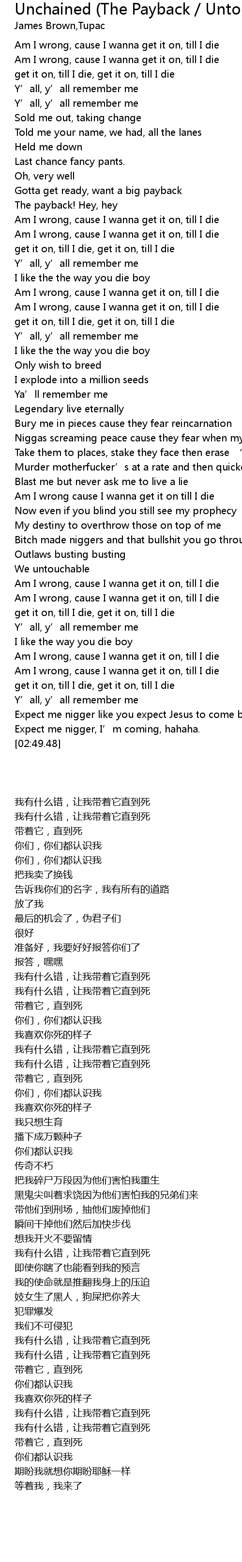 | [02:45.92] | Expect me nigger, I' m coming, hahaha. |