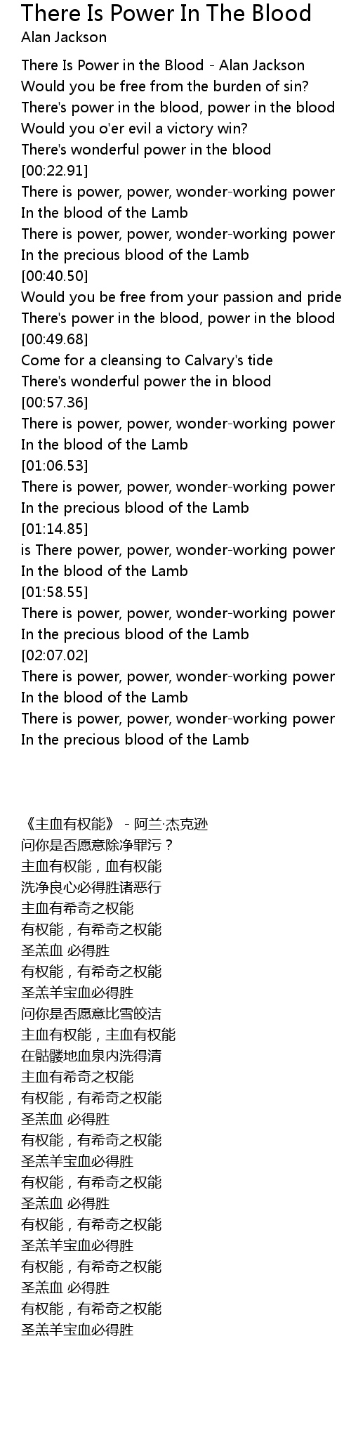 [00:00.52] There Is Power in the Blood - Alan Jackson