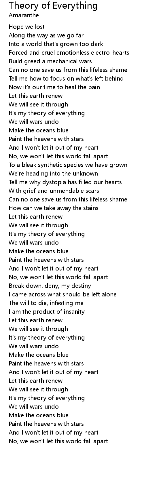 | It's my theory of everything | |