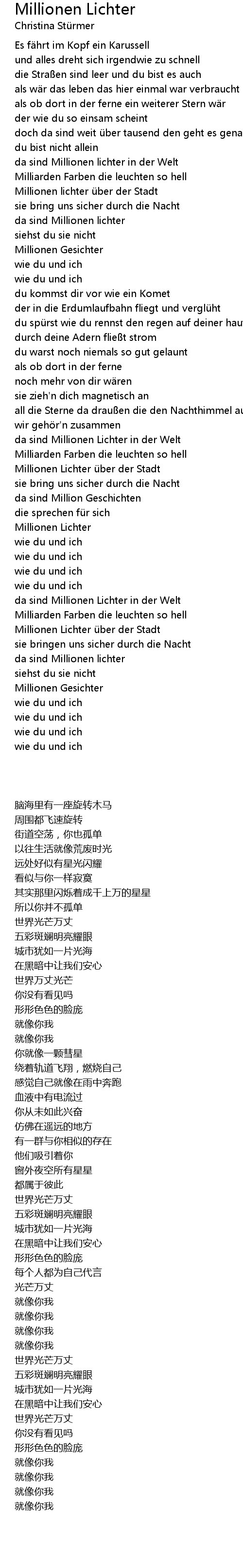 | [00:52.73] | da sind Millionen lichter in der Welt |