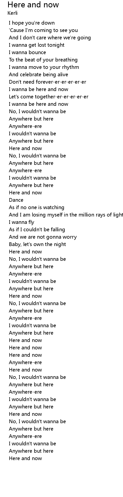 | [00:52.341] | I wanna be here and now |