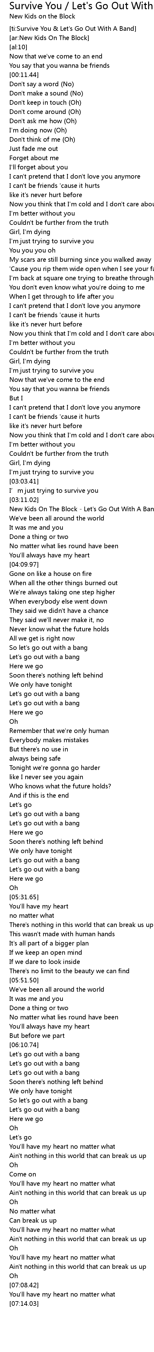 | [03:43.90] | New Kids On The Block Let' s Go Out With A Bang |