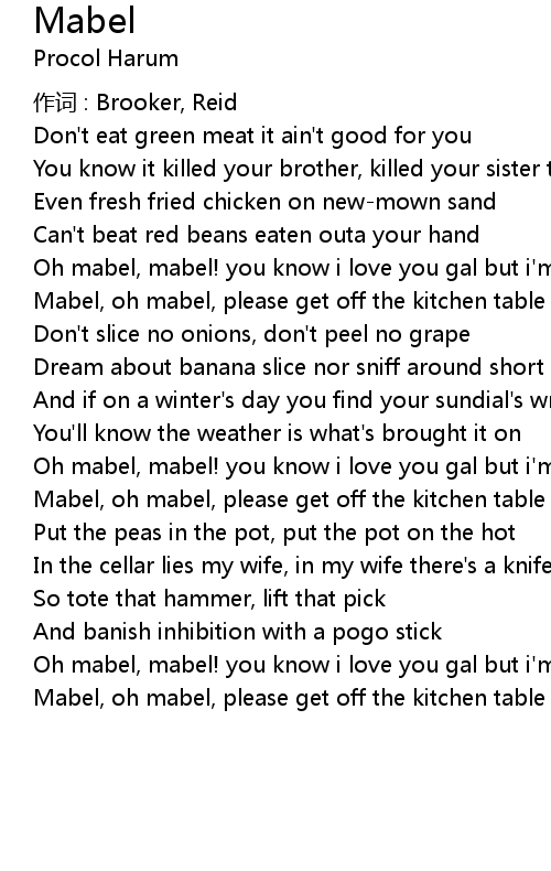 | Oh mabel, mabel! you know i love you gal but i'm not able | |