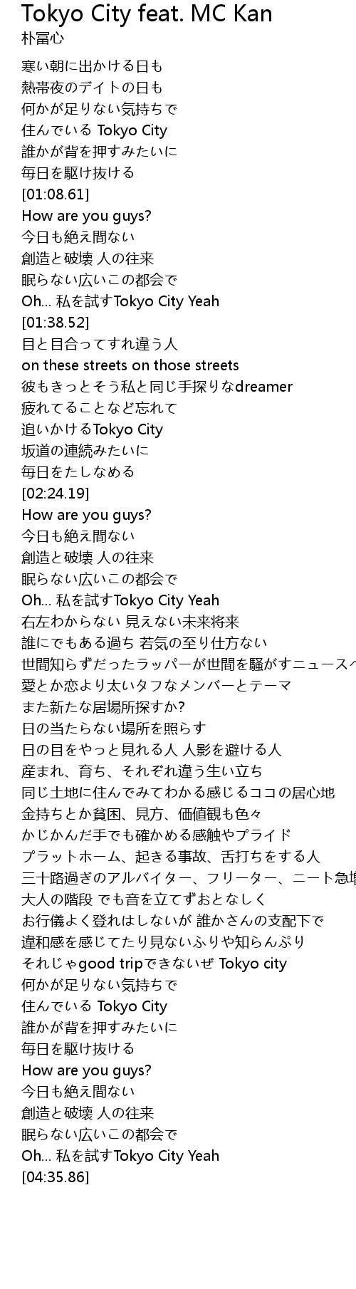 | [04:07.46] | Oh... sī shì Tokyo City Yeah |
