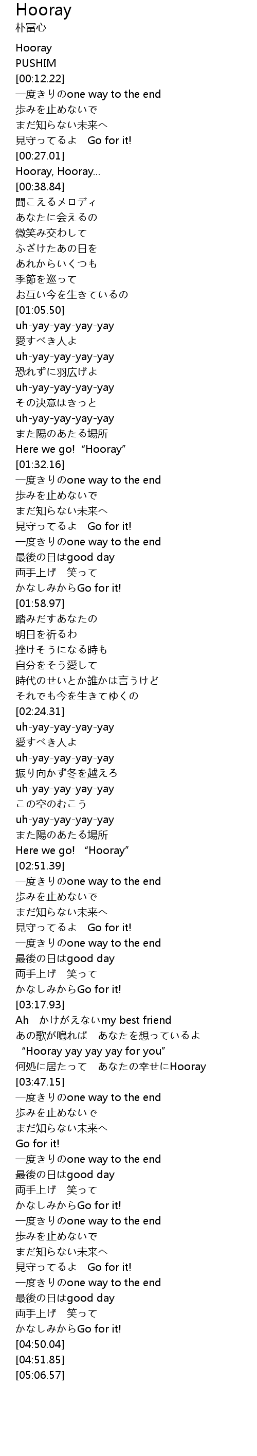 | [03:30.54] | “Hooray yay yay yay for you” |