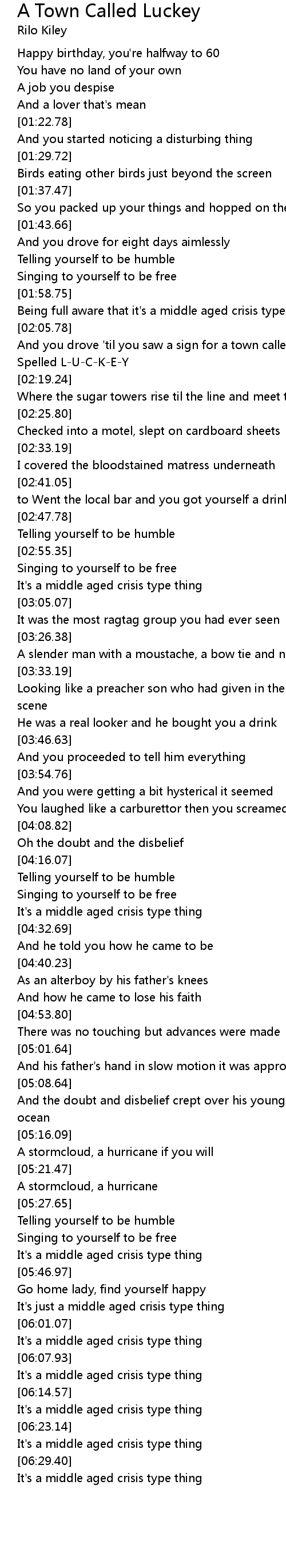 And you drove 'til you saw a sign for a town called Luckey |