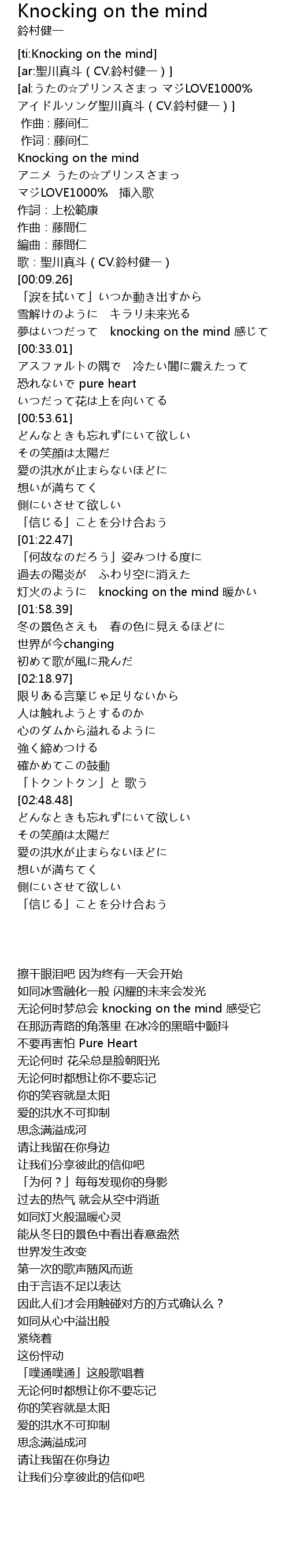 | [00:00.00] | Knocking on the mind |